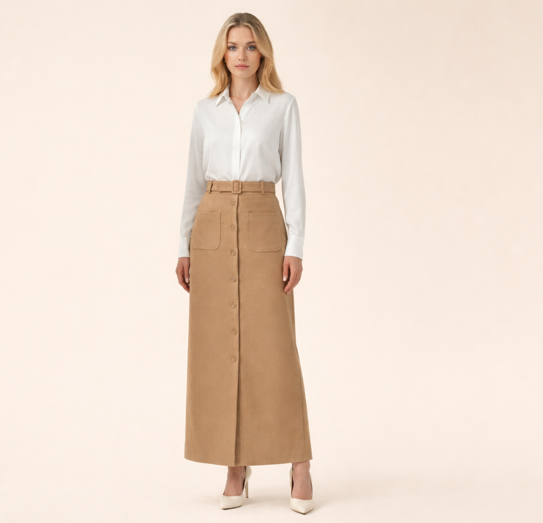 Giovanna Nicolai Camel Circle 39" Skirt With Back Zipper