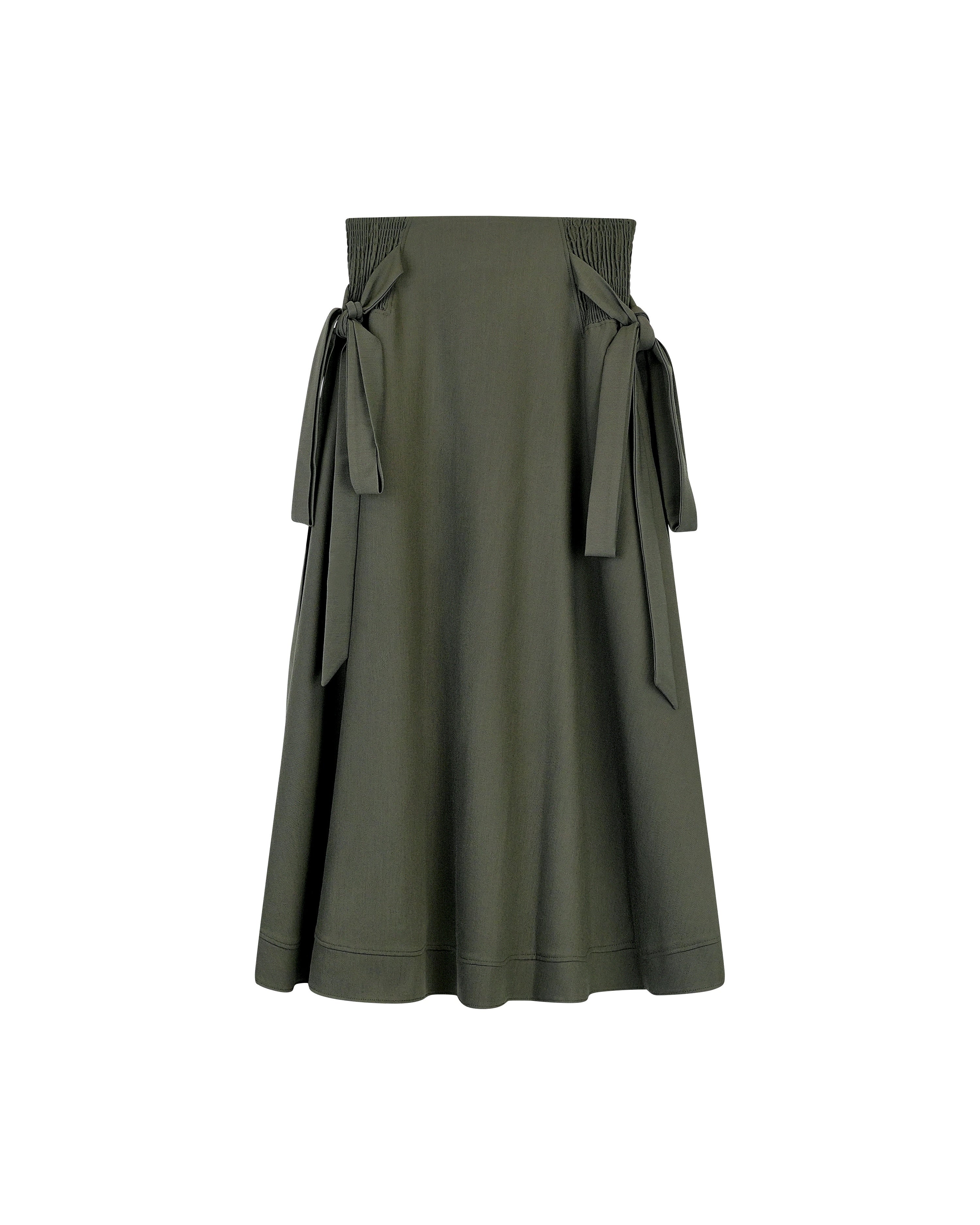Carlucci Olive Elastic Waist Design Side Bows 36" Skirt