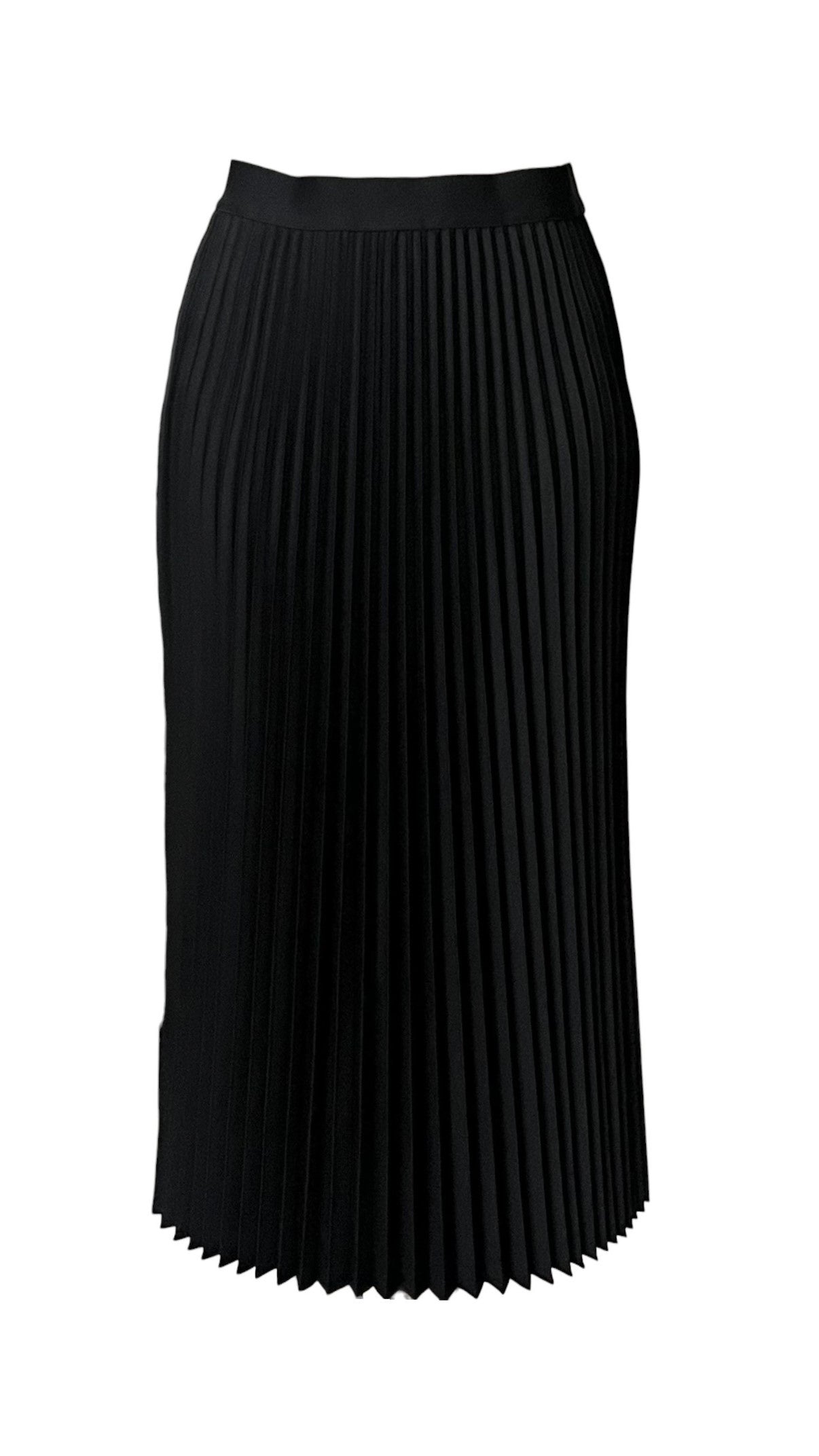 Wear & Flair 5281 Black Accordion Pleated 34" Skirt is a beautiful, classic midi skirt. The fine accordion pleats are heat-set to maintain their sharp, consistent shape, creating a flattering, flowing silhouette that elongates the frame. The length provides modest coverage with timeless elegance.