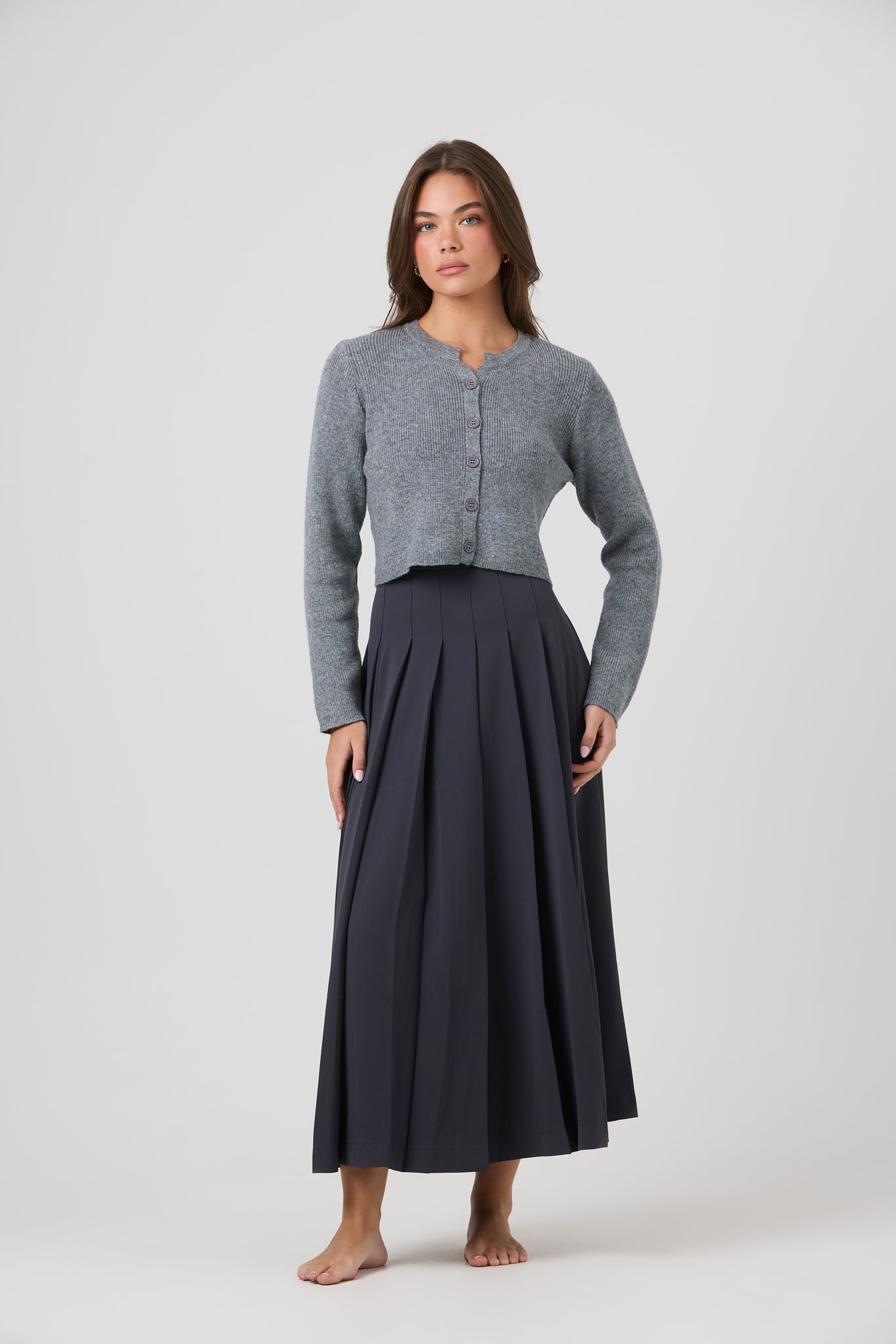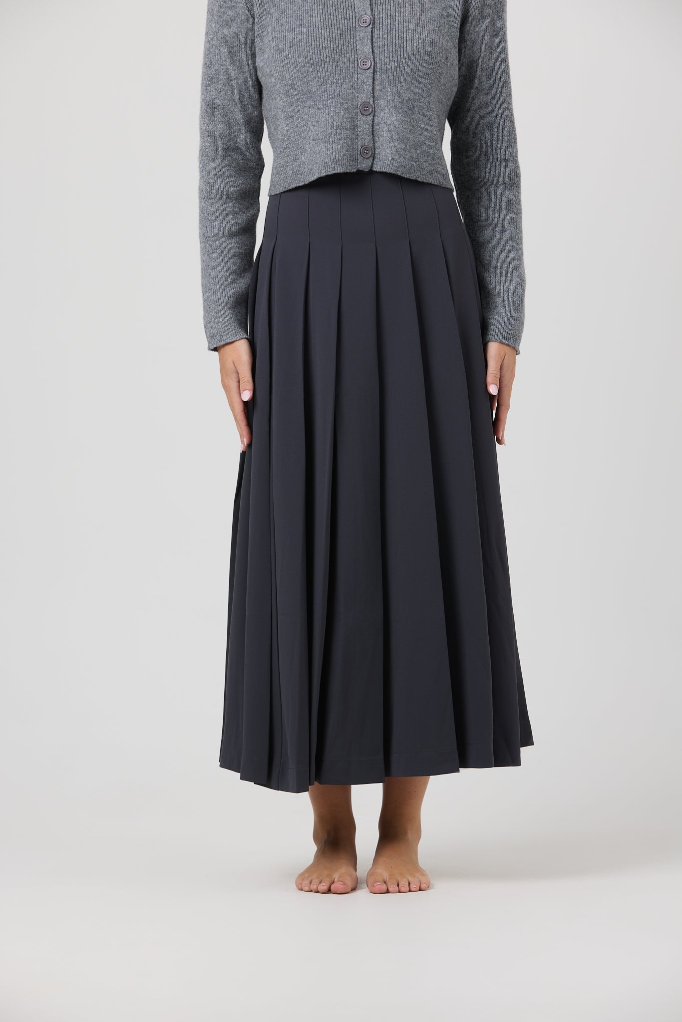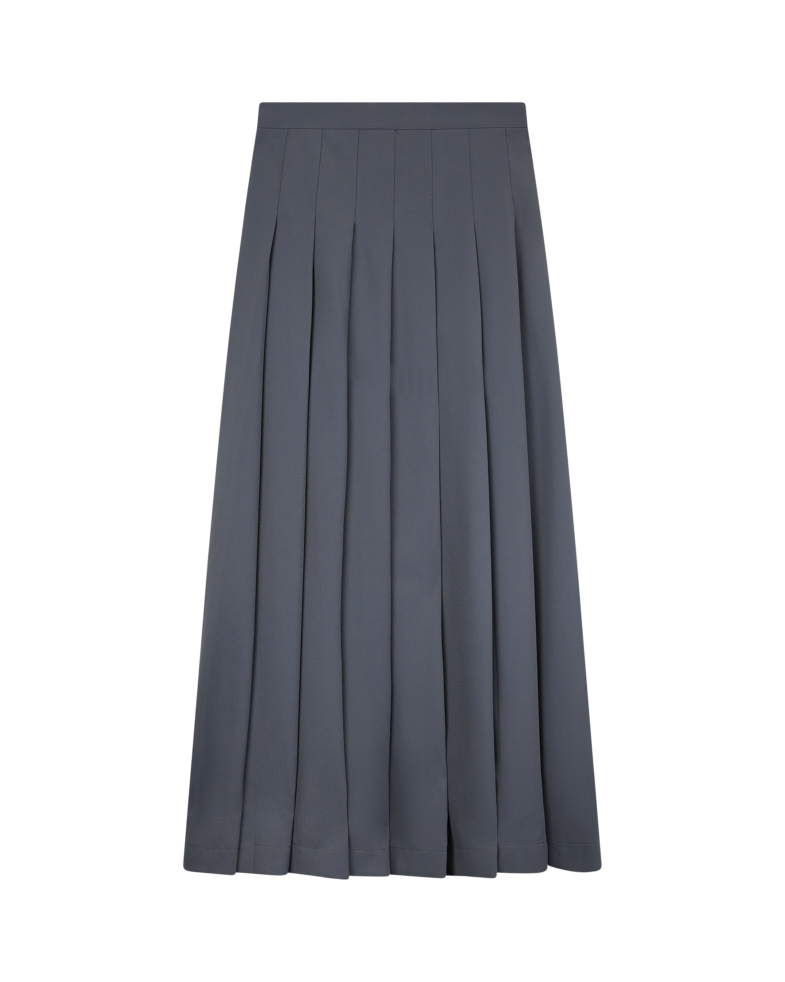 Bytess BT137 Gray Pleated 36" Skirt features sharp all-around pleats in a versatile grey tone. Its flowing length and structured fabric create a refined, comfortable look for both work and casual wear.