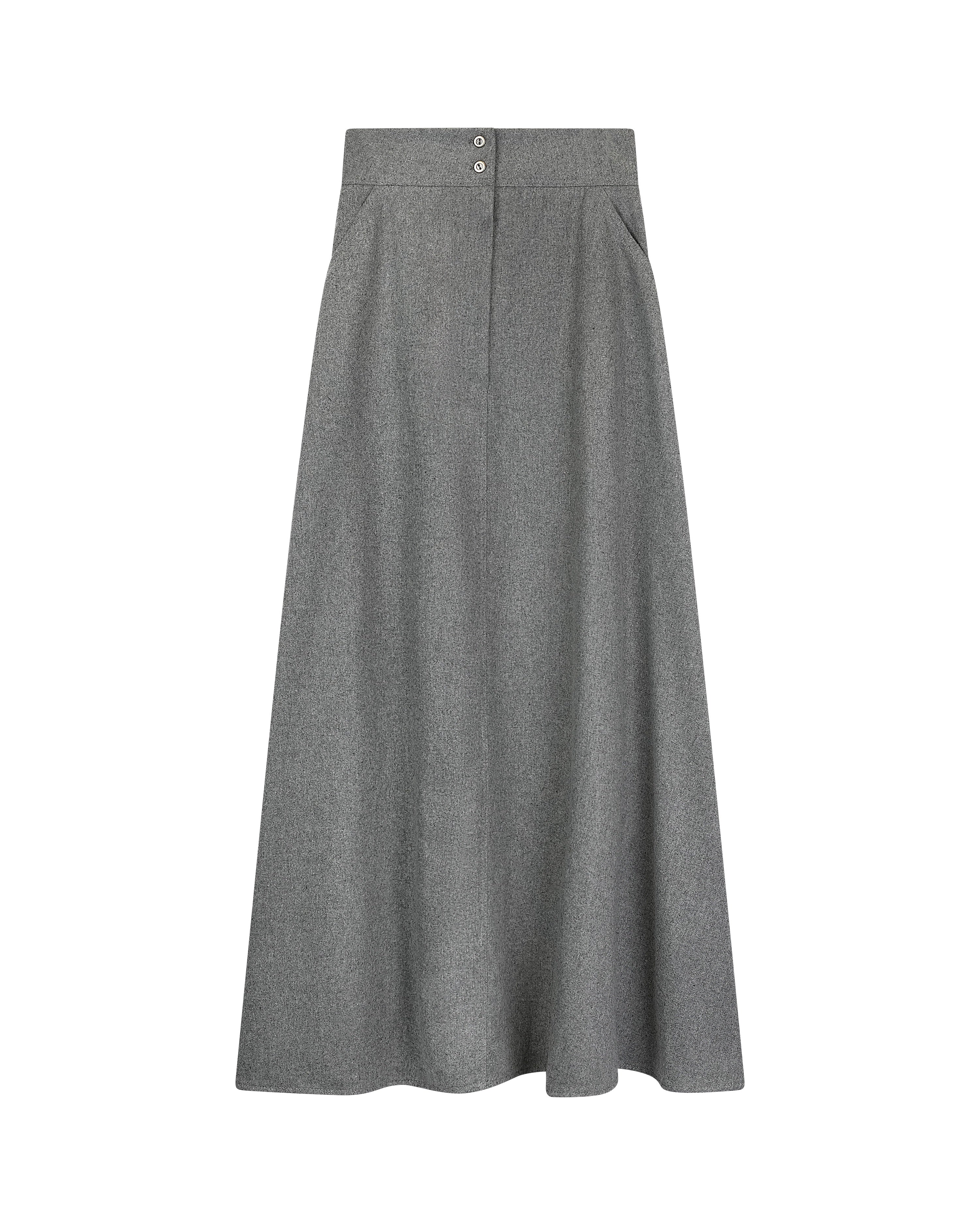 B Chic Grey Wool Front Hidden Zipper Stitching 38" Skirt with Pockets