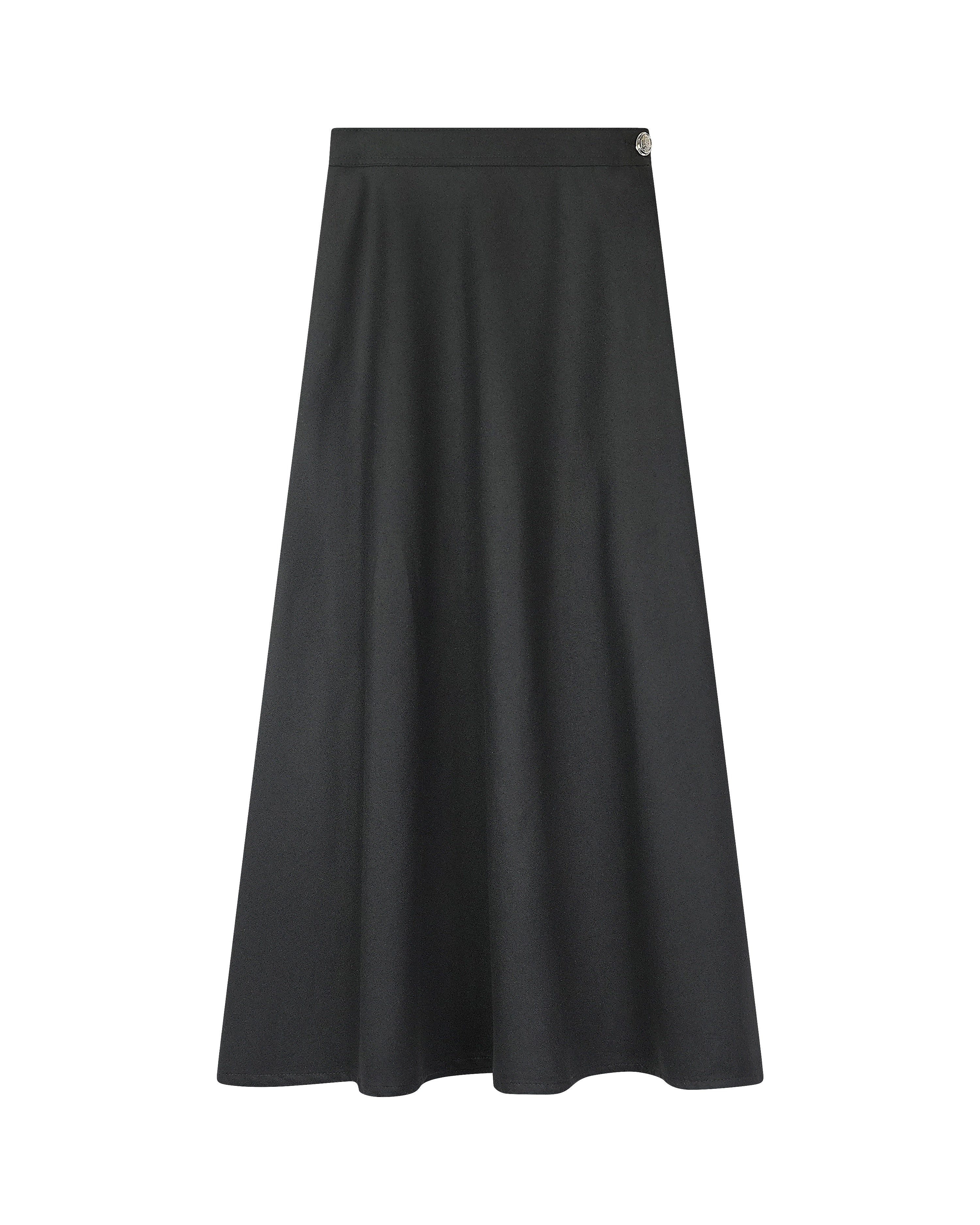 NYC Factory DW5M9185W Black Two Panel Wool Self Waist 35" Skirt with Side Zipper is crafted from soft wool with a smooth, structured finish. The fabric feels warm, durable, and comfortable, making it ideal for both work and everyday wear. Its two-panel design with a self-waist adds a clean, modest silhouette that’s timeless and versatile.