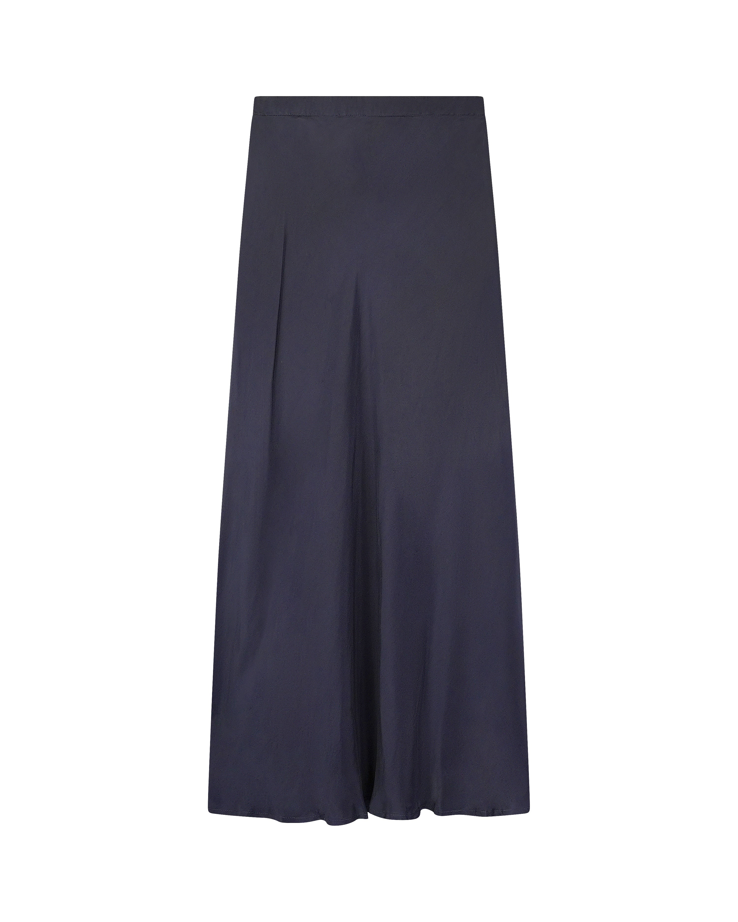 ELLIE MAKIR EMAW25-637N-C Navy Cupro Soie 41" Skirt is crafted from a cupro-soie blend that feels silky, smooth, and lightweight. The fabric drapes beautifully, offering a soft flow with a refined, elegant touch. Perfect for modest styling that transitions easily from day to evening.