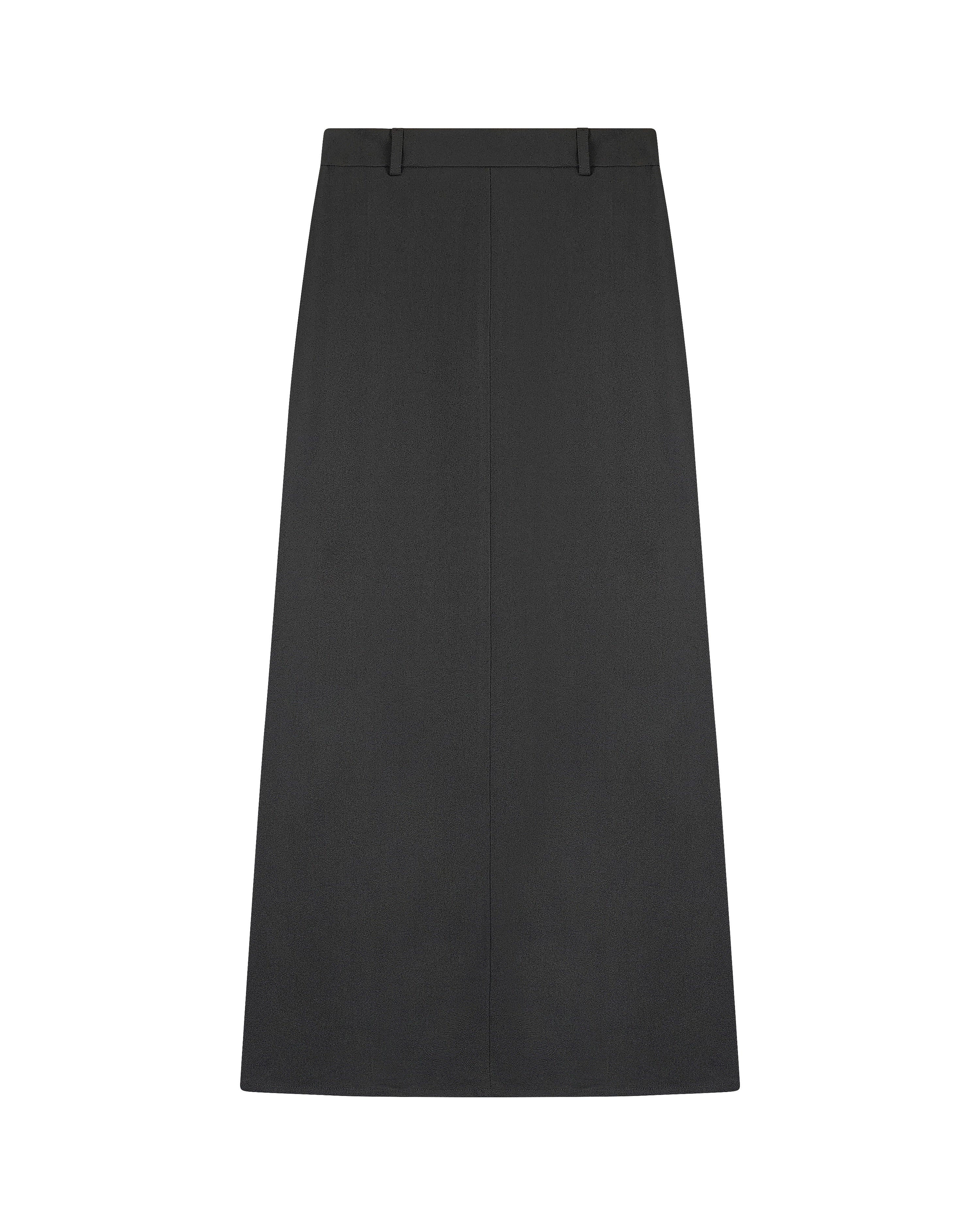 Honeyseed M634 Black Seam Belt Loop 36" Skirt is crafted from durable fabric with a structured feel, featuring seam detailing and belt loops for added function and style. The material feels sturdy yet comfortable, offering a modest and versatile look that works for both casual and polished outfits.