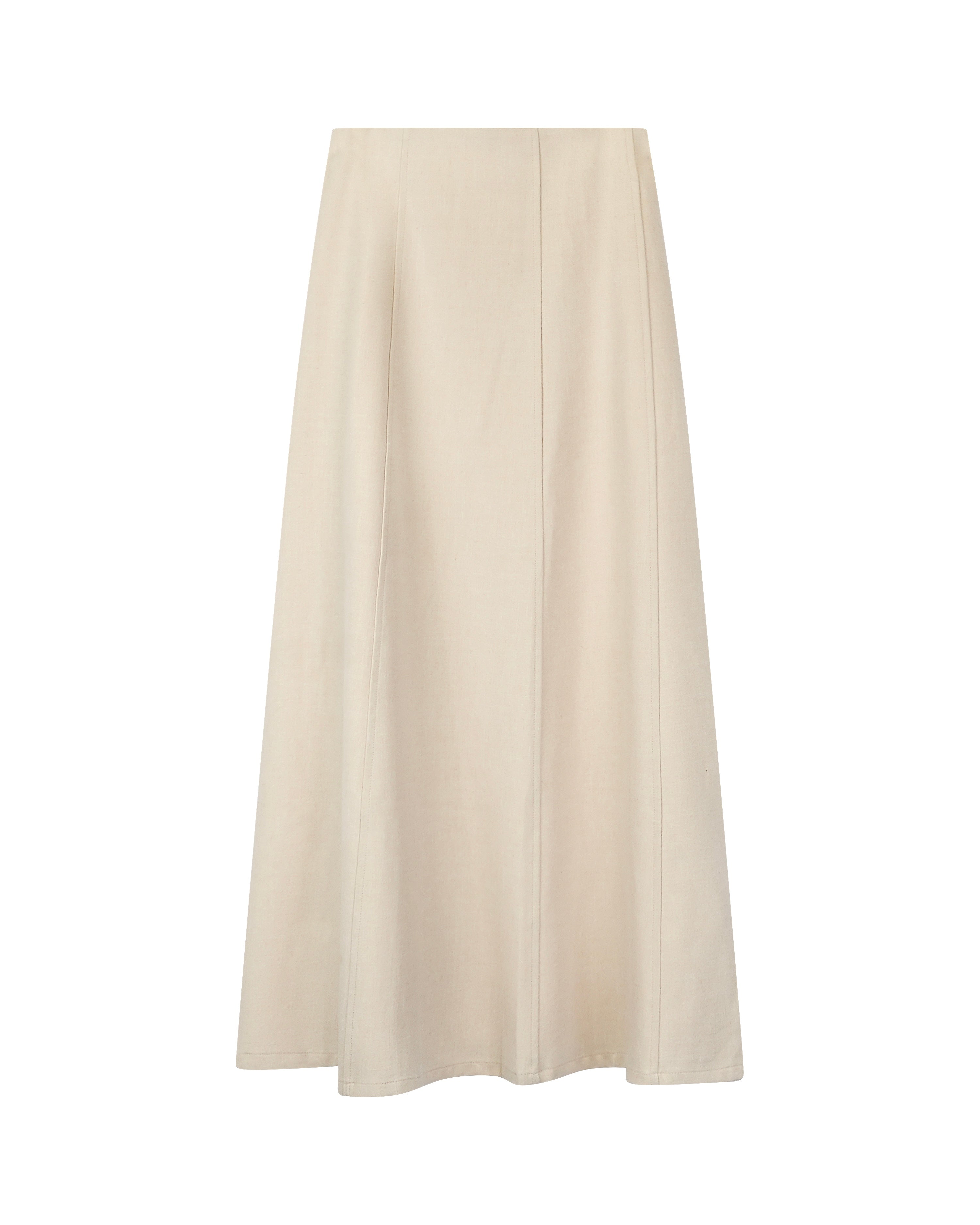 Honeyseed M713 Cream Thin Wool Seamed 36" Skirt. This cream skirt is made from thin wool, designed with subtle seams that add shape and elegance. Lightweight yet modest, it’s a versatile piece that works well for both everyday wear and dressy occasions.