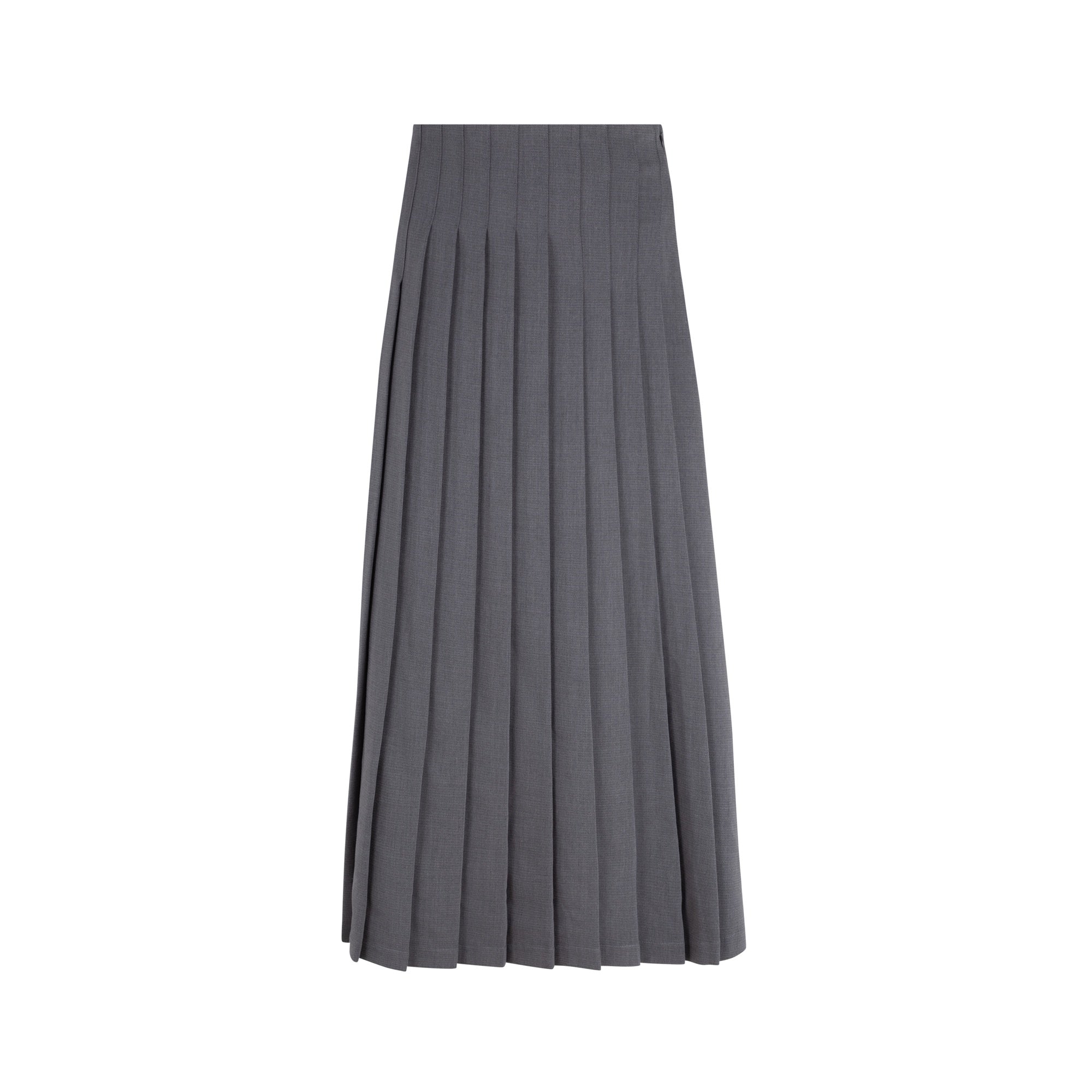 The MUN MNA5035 Gray Accorde Pleated Skirt is a versatile classic with a modern edge. Its crisp pleats and modest silhouette create a structured yet flowing look, while the neutral gray tone makes it easy to pair with a variety of tops and accessories.