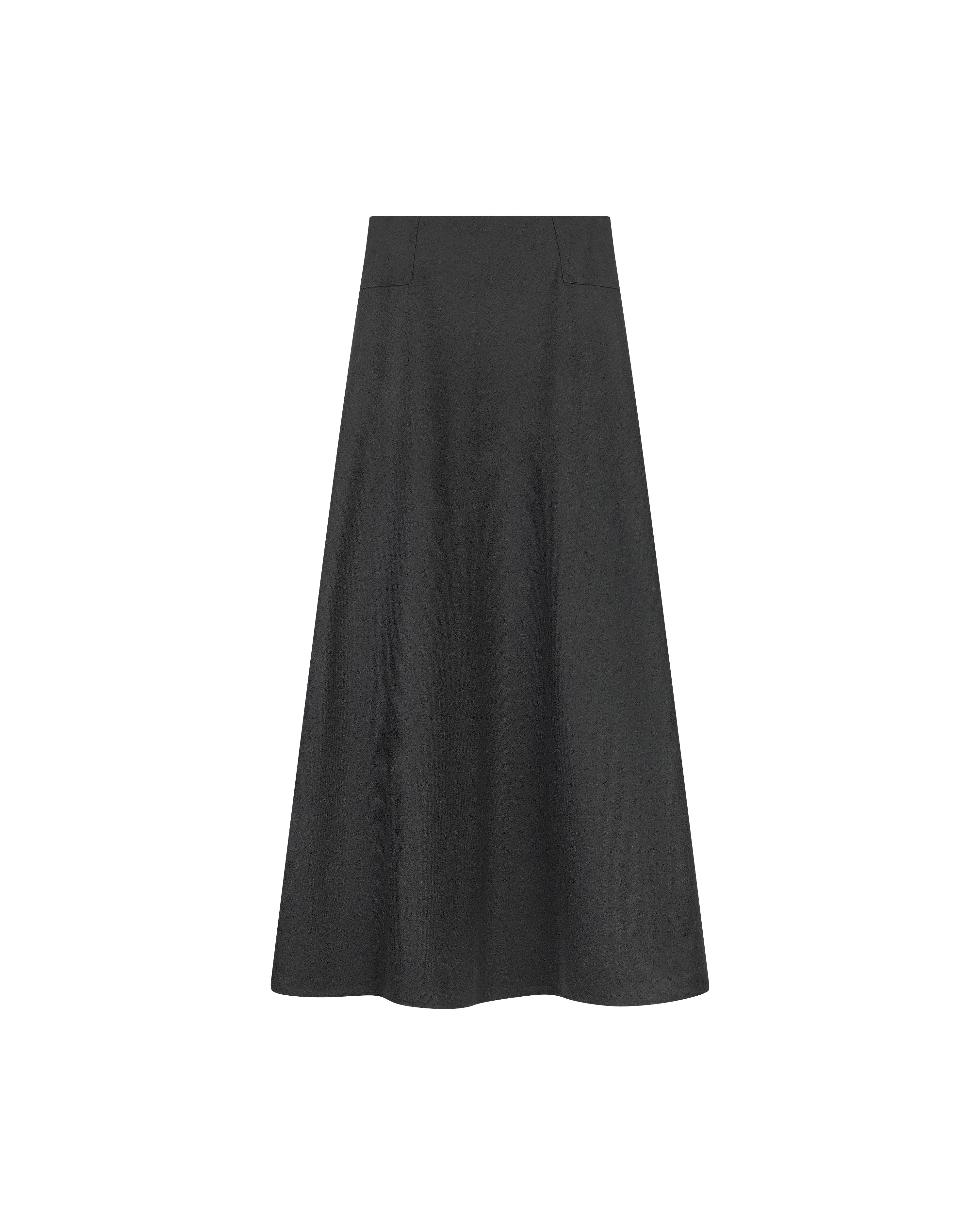 JSE Couture SH649 P/W-LLL Black Wool A-Line Half Circle 33" Skirt blends warmth and elegance in a refined wool blend. Its graceful flare and smooth drape create a timeless, flattering silhouette perfect for cool-weather wear.