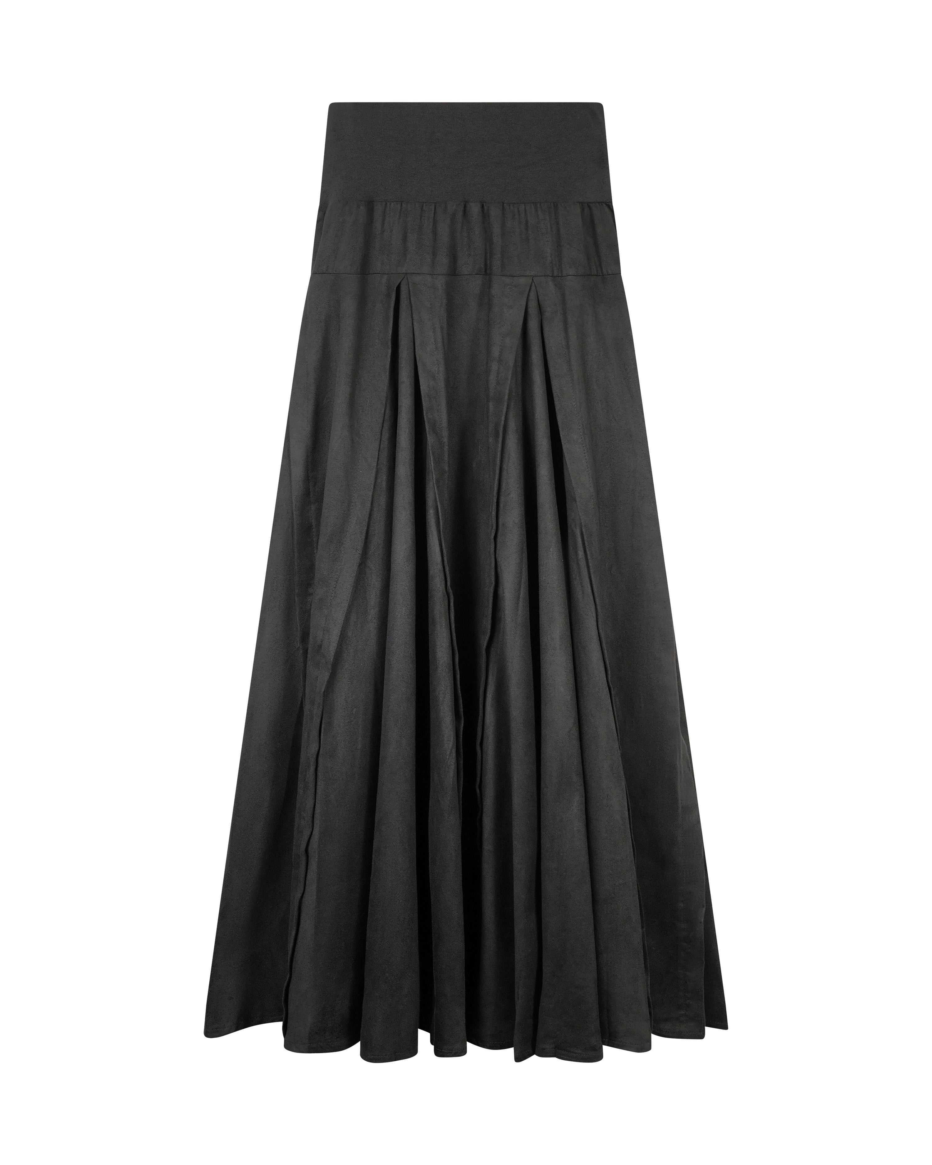 Peode SK-0206 Black Panel Flair Skirt. A graceful black skirt designed with panel detailing that adds natural movement and flair. Modest and versatile, it’s a timeless piece that works for both casual and dressy occasions.