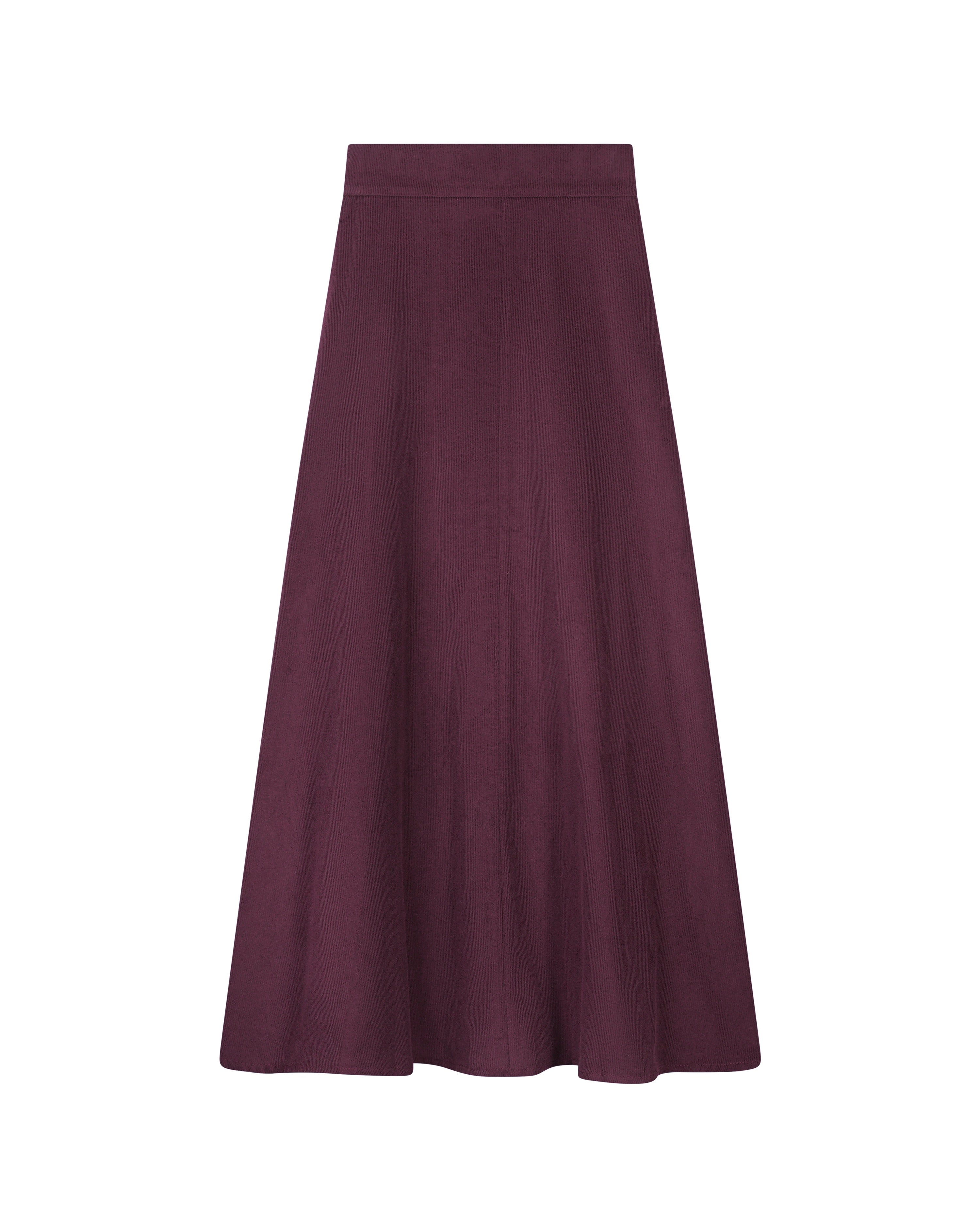 Peode SK-1406 Plum Corduroy 34" Skirt is a stunning midi skirt made from a luxurious corduroy cotton blend, showcasing a rich plum hue and a tailored silhouette that exudes warmth and charm.